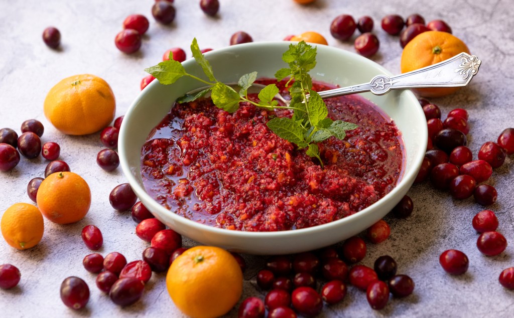 FRESH CRANBERRY SAUCE WITH TANGERINE AND MINT